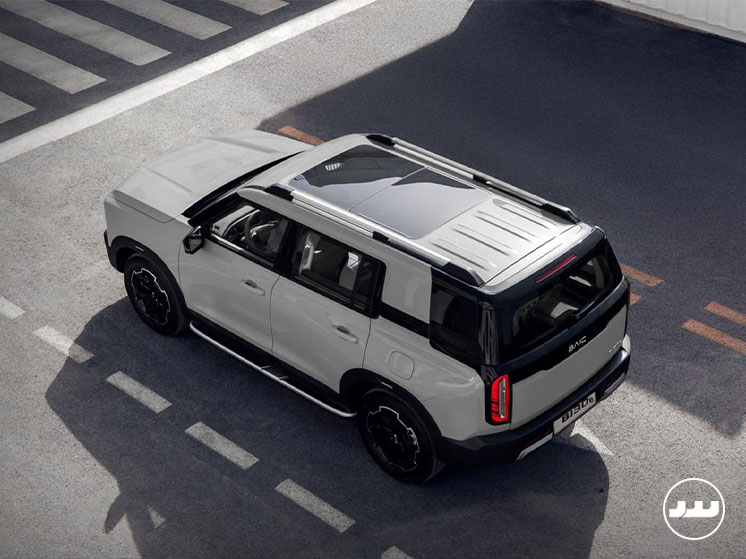 برخلاف بسیاری از خودروهای چینی که تنها ادای آفرود را درمیآورند، در BJ30e جزئیات بدنه مثل فلاپهای پلاستیکی مقاوم و سینیهای محافظ، با هدف کاربردی طراحی شدهاند. خط شانه مستقیم و ستونهای عمودی، دید بسیار خوبی را برای راننده فراهم میکند که در ترافیکهای شهری ایران و معابر باریک، یک مزیت بزرگ محسوب میشود.
