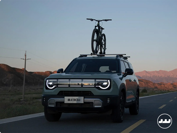 بایک در طراحی BJ30e از الگوهای منحنی و آیرودینامیک رایج فاصله گرفته و به سمت ساختاری مستحکم و زاویهدار حرکت کرده است. این سبک طراحی که اصطلاحاً باکسی نامیده میشود، علاوه بر ابهت ظاهری، فضای کاربردی داخل کابین را نیز به حداکثر میرساند.